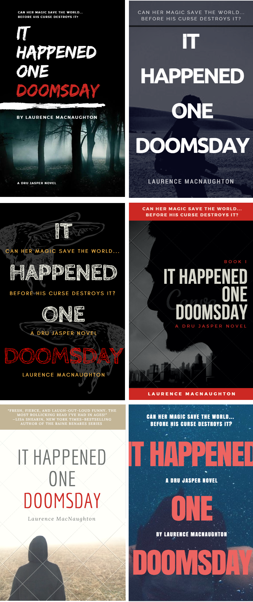 For this experiment, I decided to make up a few mock covers for my debut urban fantasy novel, It Happened One Doomsday.
